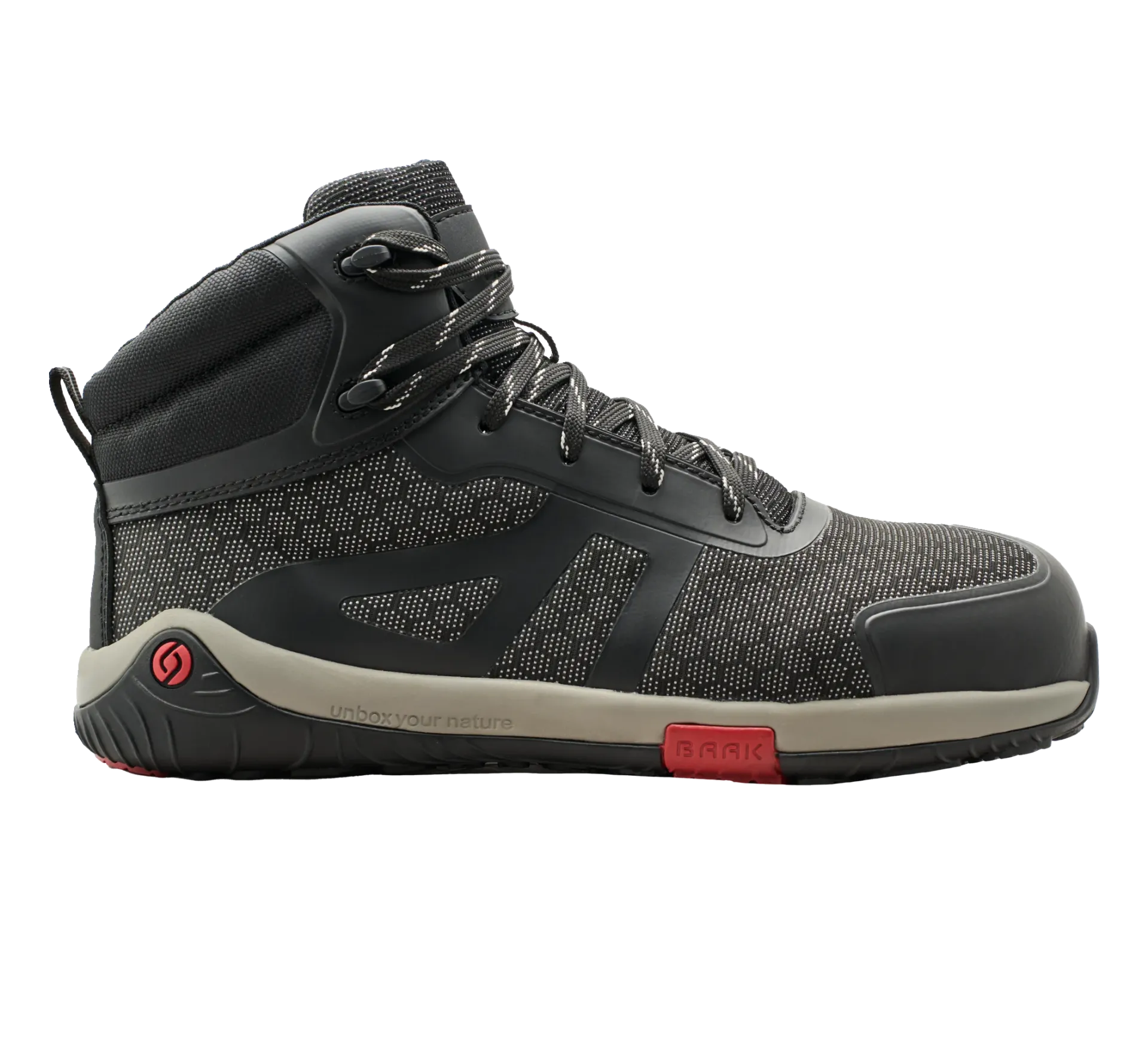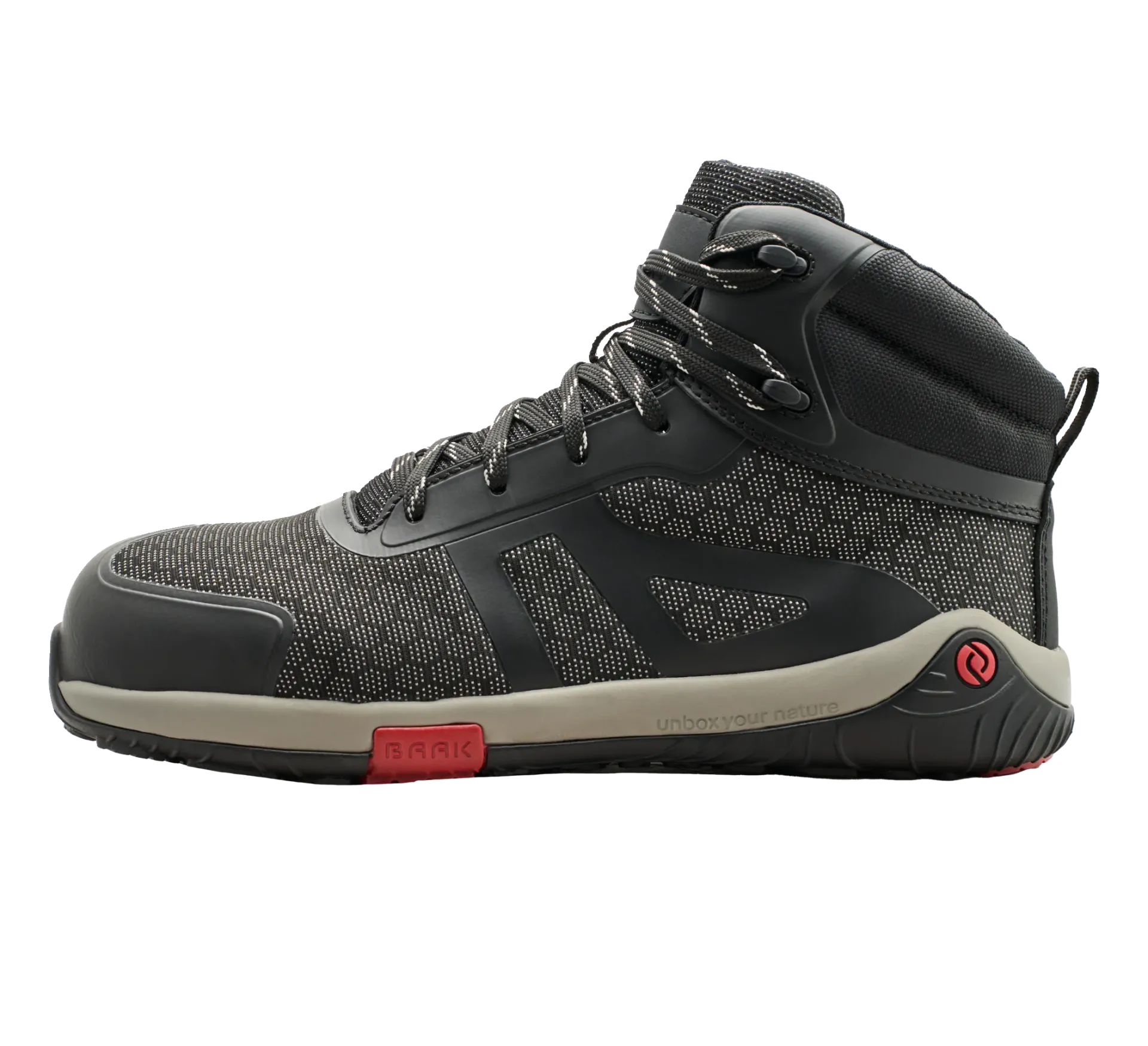 BAAK Pegasus on nilkkakorkuinen versio suositusta Phoenix-mallista – suunniteltu kaikille, jotka arvostavat lisätukea ja vakautta sekä paljasjalkamukavuutta työskennellessään. S3S-sertifioinnin ja innovatiivisen paljasjalkamuotoilun ansiosta Pegasus tarjoaa tinkimätöntä turvallisuutta ja maksimaalisen liikkumisvapauden .