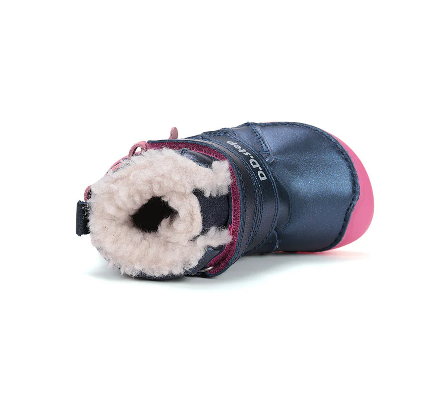 D.D.Stepin nahkainen paljasjalkatalvikengän pinta on vettä hylkivää nahkaa, jonka saa suojasuihkeilla hyvin säätäkestäväksi. Kengässä on muhkea villasekoitevuori. Voit tarvittaessa vaihtaa kenkään huopavillapohjallisen. Kenkä soveltuu parhaiten normaali-/leveähkölestiseen jalkaan. Puettavuutta helpottaa tarranauhat.