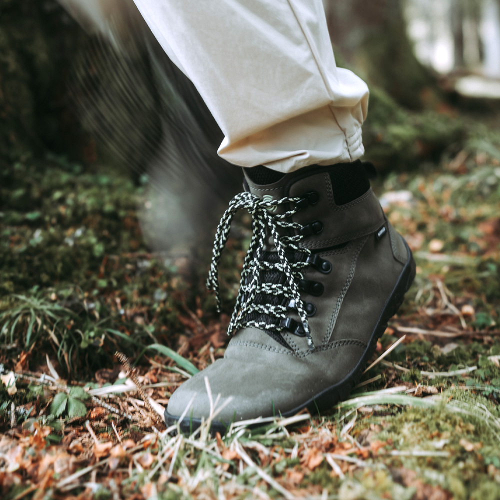 GROUNDIES® Portland Waterproof Hiking Boot Black Men on korkealaatuisesta nahasta valmistettu tyylikäs ja ajaton varrellinen paljasjalkavaelluskenkä. GROUNDIES® Portland Waterproof Hiking Boot Black Men on todella hyvin säätäkestävä paljasjalkakenkä, jonka pohjat ovat pitävät, napakat ja hyvin kulutusta kestävät. Huomaa, että pinta on vahattua nahkaa ja pintaan tulee jälkiä, kun jalkaterä taipuu kävellessä. Tämä ei ole reklamaation aihe.