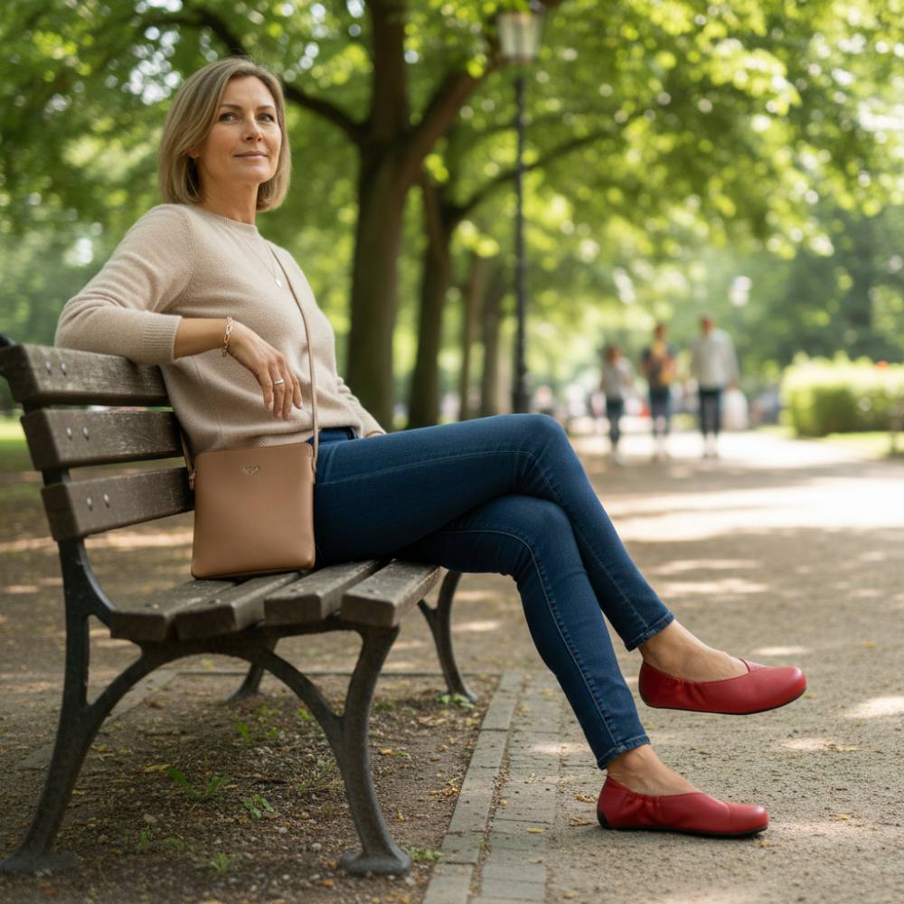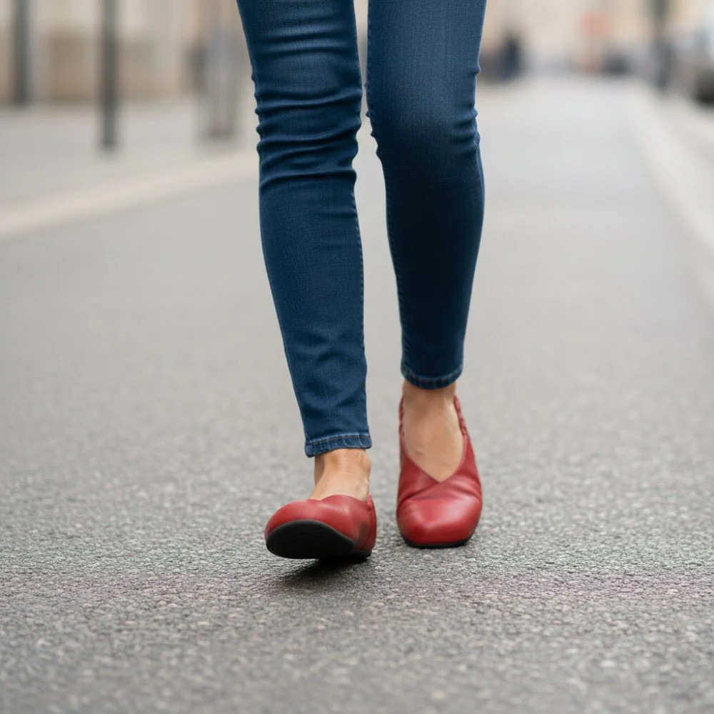 Kapeaan ja matalaan jalkaan tämä malli ei istu nätisti. Parhaimmillaan normaalikorkuiseen jalkaterään. Huomaa kuitenkin, että ballerinan istuvuutta voit parantaa ohuella pohjallisella. Ballerinan päälymateriaali on pehmeä ja myötää hyvin, joten ballerina istuu myös hieman leveämpäänkin jalkaan.